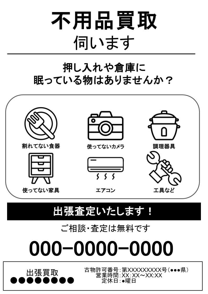 【Googleスライド編集】出張買取チラシテンプレート|A4モノクロ|ポスティング用|簡単編集